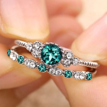 victoria’s vogue 2Pcs/Set 2018 Luxury Green Blue Stone Crystal Rings For Women Sliver Color Wedding Engagement Rings Jewelry Dropship