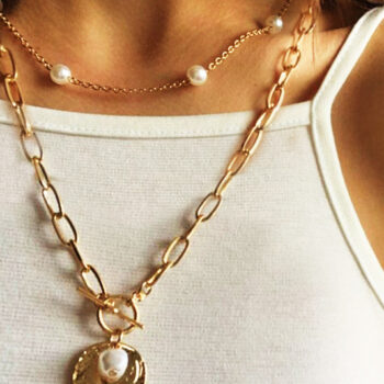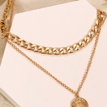 victoria’s vogue Punk Coin Chain Necklace for Women 2Pcs/set Gold Color Pearl Bead Choker Gothic Multilayer Pendant Necklaces Jewelry Party