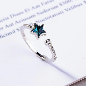 victoria’s vogue Beautiful Deep Sea Blue Five-pointed Star 925 Sterling Silver Jewelry Personality Fresh Crystal Opening Rings
