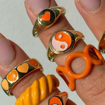 victoria’s vogue Korean Orange Color Heart Rings Set For Women Lover Colorful Resin Acrylic Chain Couples Rings Travel Gifts Jewelry
