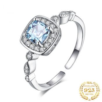 Victoria’s Vogue 1ct Genuine Blue Topaz Ring 925 Sterling Silver Rings for Women Halo Engagement Ring Silver 925 Gemstones Jewelry