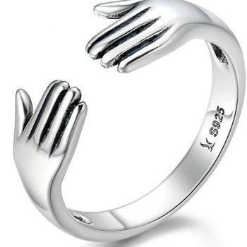 Victoria’s Vogue Genuine 925 Sterling Silver Double Layer Give Me A Hug Hand Open Finger Rings for Women Sterling Silver Jewelry