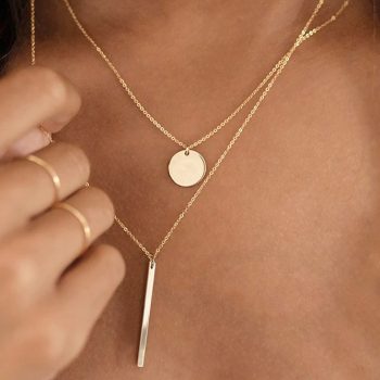 victoria’s vogue Fashion Multilevel Gold Simple Geometric Rectangle Round Sequin Pendant Necklace For Women Female Chain Collar Jewely Gift