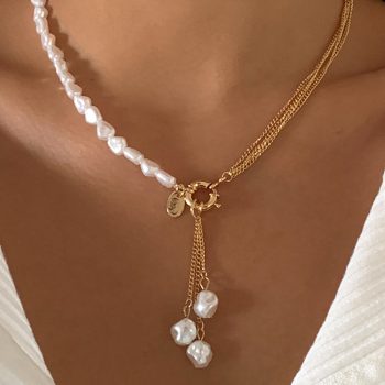 victoria’s vogue Baroque Imitation Pearl Long Tassel Pendant Necklaces Korean Elegant Gold Color Link Chain Necklaces Ladies Jewelry