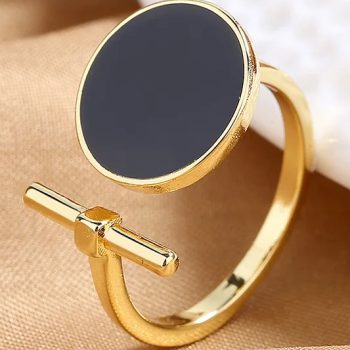 Victoria Vogue Women’s Fashion Geometric Open Rings Accessory Black/White Round Epoxy Glossy Disk Female Trendy Golden Ring Jewelry Best Gifts