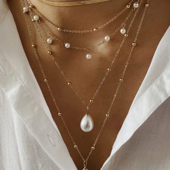 victoria’s vogue Bohemian Multi Layer Imitation Pearl Tassel Choker Necklace Collar Statement Pendant Necklace for Women Jewelry