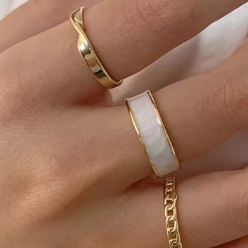Victoria’s Vogue 3pcs/set Adjustable Open Rings for Women White Green Enamel Oil Twists Weaving Geometry Ring Set Trendy Punk Personality Jewelry