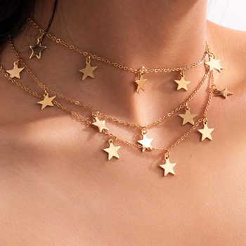 Victoria’s Vogue Simple Minimalist Multiple Pendant Necklace Statement Gold Color Star Tassel Choker Necklaces Collar Women Jewelry