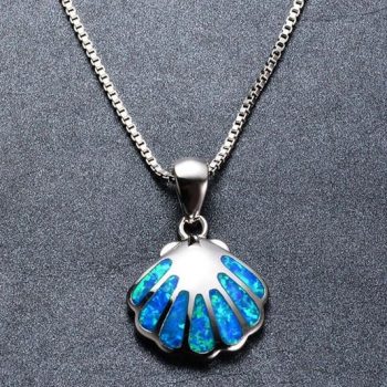 Victoria’s Vogue 925 Sterling Silver Cute Shell Pendant Necklaces For Women Wedding Jewelry Blue Fire Opal Stone Female Summer Beach Necklaces