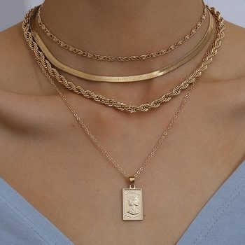 Victoria’s Vogue 4Pcs/Set Multi Layer Twisted Metal Rope Chain Choker Necklace Vintage Carved Coin Portrait Pendant Necklaces Jewelry