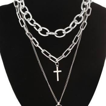 Victoria’s Vogue Layered grunge aesthetic jewelry vintage punk chain necklace for women men lock cross pendant choker chains goth accessory