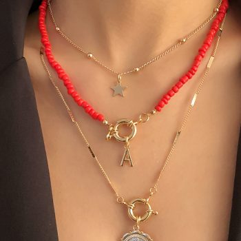 victoria’s vogue 3Pcs/Set Red Color Seed Beaded Chain Choker Necklace Punk Letter Carved Coin Star Pendant Necklace for Women Jewelry