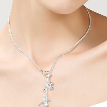 victoria’s vogue 925 Sterling Silver Two Dragonfly Pendant Necklace For Women Snake Chain Necklace Wedding Engagement Jewelry