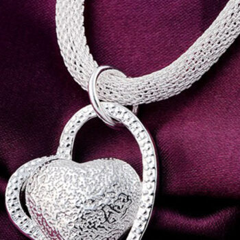 victoria’s vogue 925 Sterling Silver 18 Inch Double Heart Pendant AAA Zircon Necklace For Women Fashion Wedding Charm Jewelry
