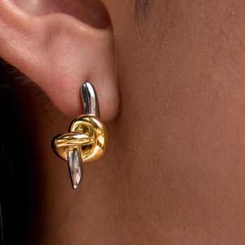 victoria’svogue Personalized Designer Classic 18K Gold Color Plated Stainless Steel Two-Tone Knot Ear Studs Jewellery Woman Daily Wear