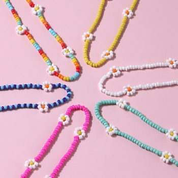 Victoria’s Vogue New Sweet Colorful Little Daisy Flowers Necklace Boho Beaded Clavicle Chain Choker Necklaces for Women Girls Jewelry Gift