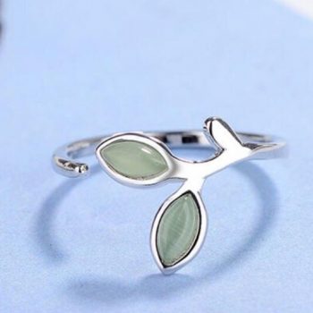 Victoria’s Vogue New Fashion Creative Temperament Sweet Opal 925 Sterling Silver Jewelry Green Leaf Female Crystal Opening Rings