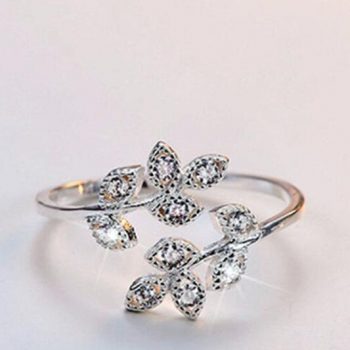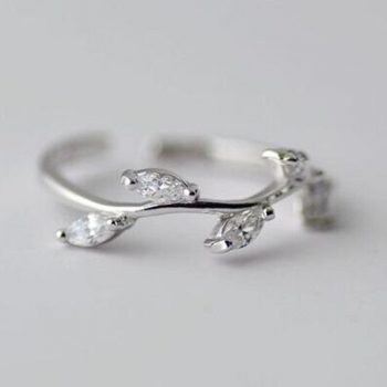 Victoria’s Vogue New Fashion Temperament Flash Crystal Leaf 925 Sterling Silver Jewelry Sweet Branch Popular Gift Opening Rings