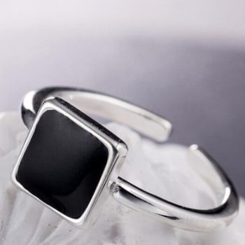 Victoria’s Vogue New Personality Black Epoxy Geometry 925 Sterling Silver Jewelry Creative Atmosphere Square Simple Opening Rings
