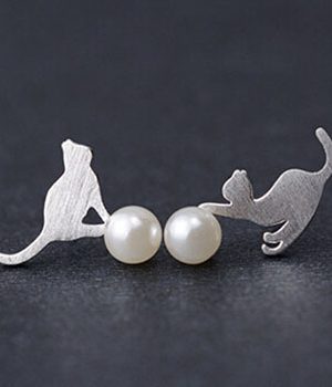 victoria’s vogue 925 sterling silver Cat pearl asymmetric Stud Earrings for Women Elegant Wedding Jewelry pendientes mujer moda Brincos