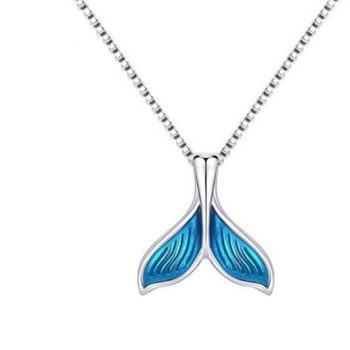 Victoria’s Vogue New Style Temperament Mori Mermaid Fashion 925 Sterling Silver Jewelry Blue Fish Tail Personality Pendant Necklaces