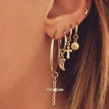 victoria’s vogue 2020 New Boho Fashion Gold Geometric Cross Horns Sun Moon Crystal Pendant Mix Earrings For Women Vintage Earring Jewelry