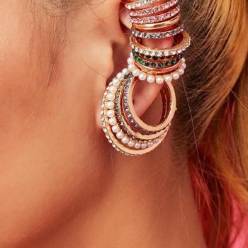 victoria’s vogue Luxury Bling Rhinestone Clip Earrings Without Piercing Punk Shiny Rainbow Crystal Cuff Earrings for Women Jewelry
