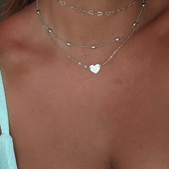 victoria’s vogue Bohemian Silver Color Heart Necklace For Women Girls Multilayer Geometric Hollow Heart Necklace Jewelry Party