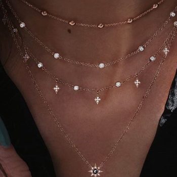 victoria’s vogue New Boho Multi-layer Crystal Geometry Necklace For Women New 2022 Vintage Star Moon Sun Pendants Necklaces Chokers Jewelry Gift