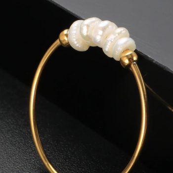 victoria’s vogue Trendy Natural Freshwater Pearl Irregular Combination Thin Rings For Women Girls Lover Stainless Steel Gold Ring Jewelry Gift