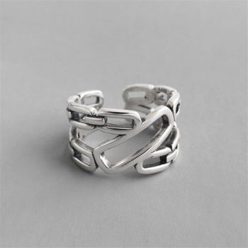 Victoria’s Vogue New Personality Wide-faced Chain 925 Sterling Silver Jewelry Irregular Exquisite Geometric Hollow Opening Rings