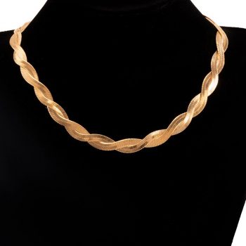 Victoria’s Vogue Copper Flat Blade Snake Chain Choker Necklace for Women Double Layered Twisted Metal Short Clavicle Necklace Jewelry