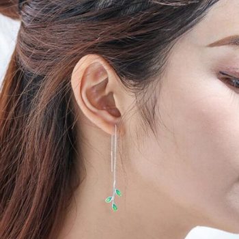 Victoria’s Vogue New Arrival Beautiful Colorful Leaf Ear Line 925 Sterling Silver Jewelry Personality National Women Gift Dangle Earrings