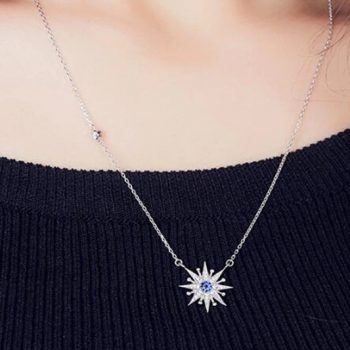 Victoria’s Vogue Temperament Beautiful 925 Sterling Silver Jewelry Fashion Female Sun Flower Zircon Pendant Necklace