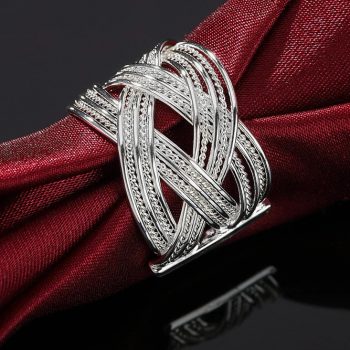 Victoria’s Vogue 925 Sterling Silver Big Net Weaving Ring Retro For Women Fashion Wedding Engagement Party Gift Charm Jewelry