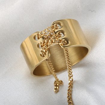 victoria’s vogue Trendy High Quality Glossy Chain Wide Rings For Women Men Stainless Steel Metal Long Chain Knotted Charm Ring Jewelry Gift New