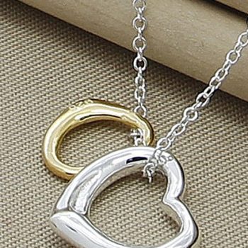 Victoria’s Vogue 925 Sterling Silver Gold Double Heart Pendant Necklace 18 Inch Chain For Women Wedding Engagement Fashion Charm Jewelry