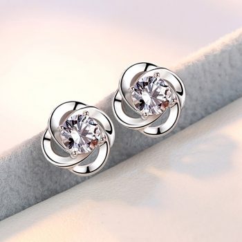 Victoria’s Vogue Silver 925 Stud Earrings Flower Shape With Solitaire 6mm Zirconia Diamond Wedding Earrings Women Gift Silver 925 jewelry
