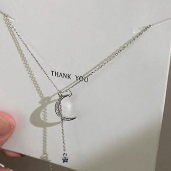 Victoria’s Vogue New Beautiful Moon And Star Five-Pointed 925 Sterling Silver Jewelry Personality Crystal Exquisite Gift Women Necklaces