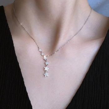 Victoria’s Vogue New Temperament Beautiful Exquisite Pentagram Star 925 Sterling Silver Jewelry Flash Crystal Clavicle Chain Necklaces