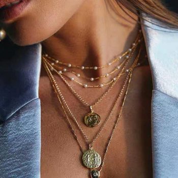 Victoria’s Vogue Vintage Human Head Portrait Coin Pendant Gold Necklaces For Women New Female Fashion Faux Pearl Necklace Jewelry Gift