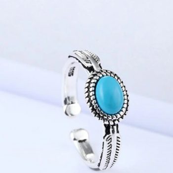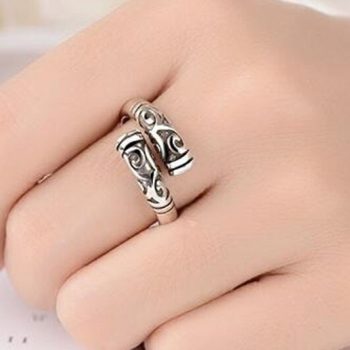 Victoria’s Vogue New Creative Style Literary Blue 925 Sterling Silver Jewelry Elephant Carved Hollow Flower Opening Rings