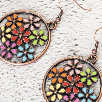 victoria’svogue 2021 Vintage Bohemian Boho Ethnic Antique Flower Oil Drip Hollow Round Drop Earrings for Women Fashion Jewelry Accessories