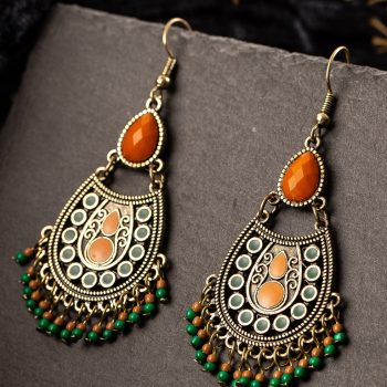 victoria’svogue Boho Ethnic Rose Golden Statement Beads Tassel Dangle Drop Earrings for Women Female Fashion 2021 Jewelry Accessories