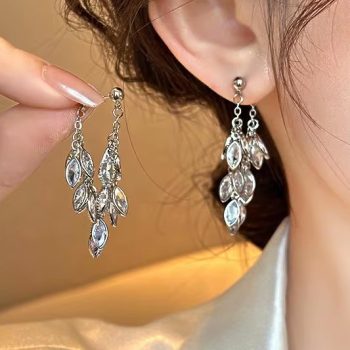 Victoria’s Vogue Luxury Zircon Tassel Leaf Earrings for Women Fashion Unique Long Tassel Chain Ear Buckle Wedding Trendy Jewelry Gifts