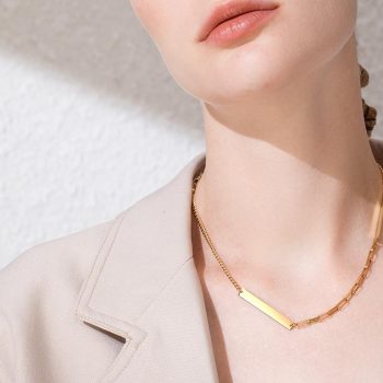 Victoria’s Vogue Double Flat Bar Choker Necklace Women Stainless Steel Gold Color Pendant Necklace Femme Fashion Jewelry Gifts