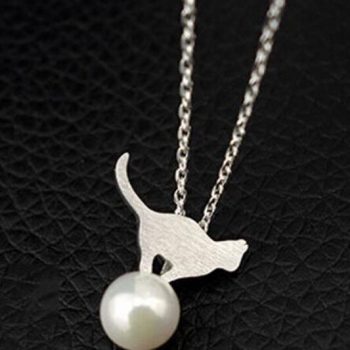 Victoria’s Vogue Fashion Beautiful Drawing Cat Pearl Personality 925 Sterling Silver Jewelry Exquisite Anti-Allergic Pendant Necklaces
