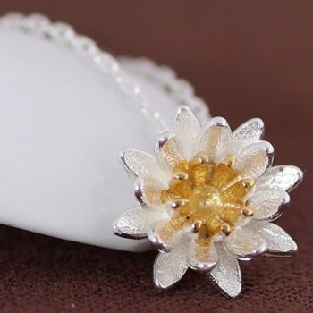 Victoria’s Vogue 925 Sterling Silver Lotus Necklaces & Pendants For Women Fashion Lady Festival Gift Sterling-Silver-Jewelry