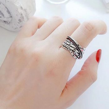 Victoria’s Vogue Creative Female Fashion Personality 925 Sterling Silver Jewelry Twist Geometry Hollow Exquisite Opening Rings