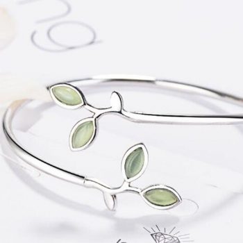 Victoria’s Vogue New Beautiful Sprout Exquisite Style Fashion 925 Sterling Silver Jewelry Bracelets Literary Leaves Crystal Bangles
